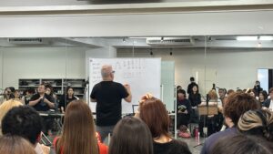 ワークショップ1日目は、シンガー向けの公開ライブレッスン形式。事前に募った生徒役の方が実際に歌い、グレッグ先生がその場で発声の課題を見極め、エクササイズを通じて“声の変化”を引き出していきます。