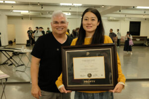 2025年にプログラムは修了したのですが、11月にグレッグ先生が来日された際、修了証の盾を「スペインから持ってきたよ」と直接手渡してくださったんです。想像以上に大きくて立派な盾で(笑)、わざわざ持ってきてくださったお気持ちが本当に嬉しかったです。